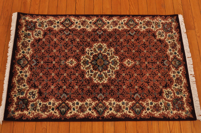 Persian rugs are known for their detailed floral designs, sometimes with a pronounced center medallion and sometimes with a repeating all over pattern. Because they are so intricate they tend to have a higher knot count. It's a bit like digital photography: if you have a very detailed image, you need more dots per square inch to show the detail. So, with a very intricate pattern on a rug, you need a lot of knots per square inch to show the design.