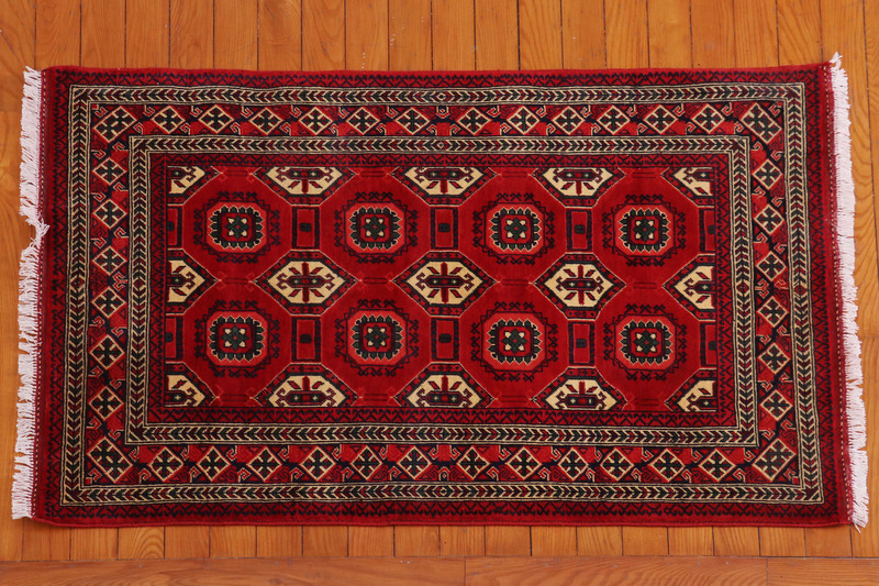 Khan Mamdi carpets have their roots in the regional nomadic tribal culture. Historically, they would have been knotted with naturally dyed hand spun yarn, but today they are almost entirely knotted from commercially-produced dye and machine-spun wool. Reflecting their historical traditions, Khan Mamdi rugs are constructed on horizontal looms with 100% wool on a wool warp and weft.