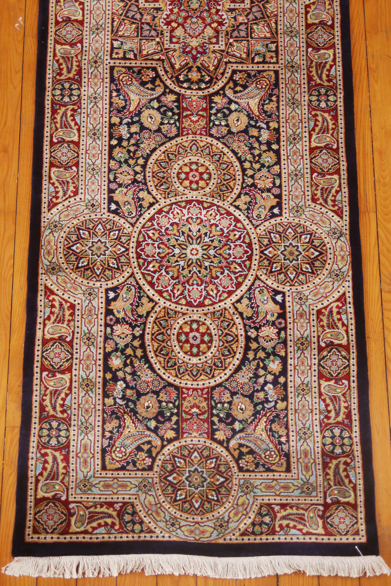 Persian rugs are known for their detailed floral designs, sometimes with a pronounced center medallion and sometimes with a repeating all over pattern. Because they are so intricate they tend to have a higher knot count. It's a bit like digital photography: if you have a very detailed image, you need more dots per square inch to show the detail. So, with a very intricate pattern on a rug, you need a lot of knots per square inch to show the design.