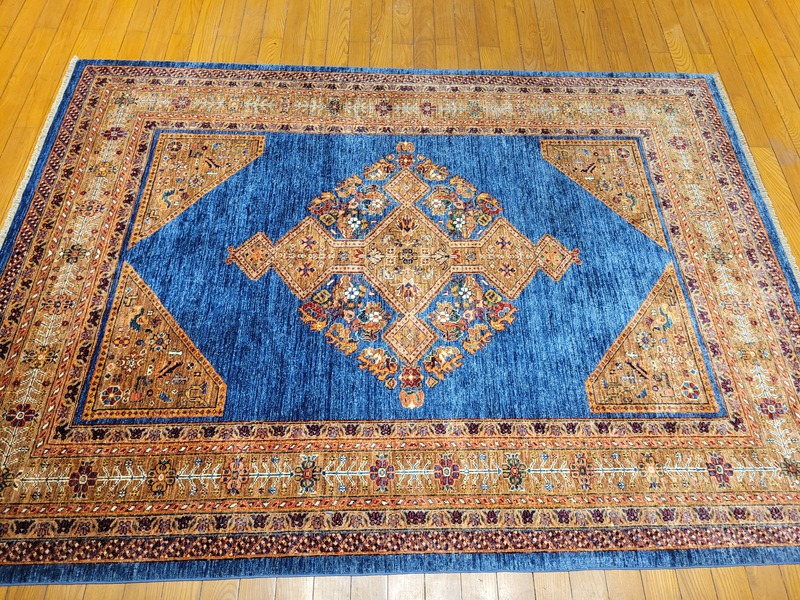 • Production: A 9'x12' rug could be completed in 12–14 months, the same time it takes to produce a 9'x12' Persian however with a Chobi, over 70% of the labor done on these rugs happens before the rug actually reaches the loom, from spinning the wool by drop spindle to hand-gathering and producing the seasonal natural dyes.